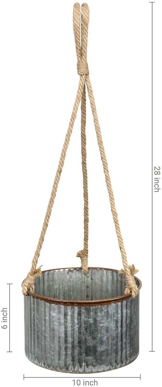 Round Silver 10 Inch Galvanized Metal Hanging Planter W Thick Jute Ro Mygift